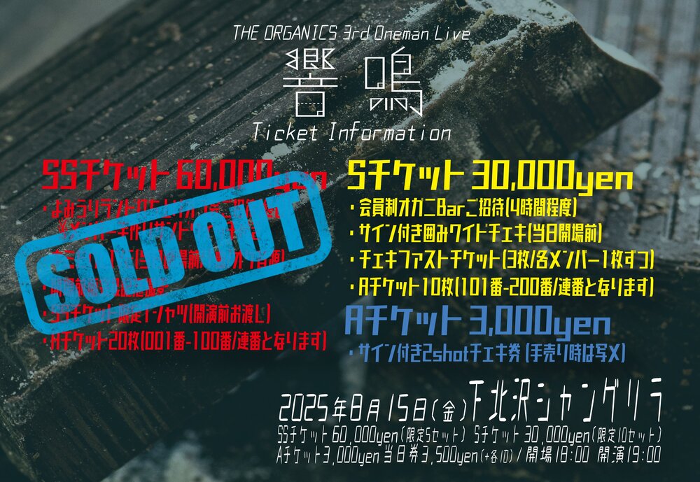 8/15(金)THE ORGANICS 3rd Bandset Oneman Live "響鳴"